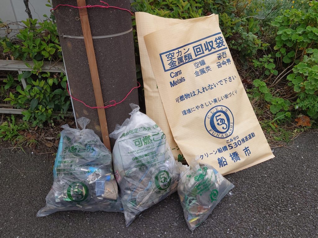 短い収集時間でしたが、可燃ごみを中心にこれだけのごみが収集できました。以前と比べ、空き缶類のポイ捨てはかなり減少している印象です。